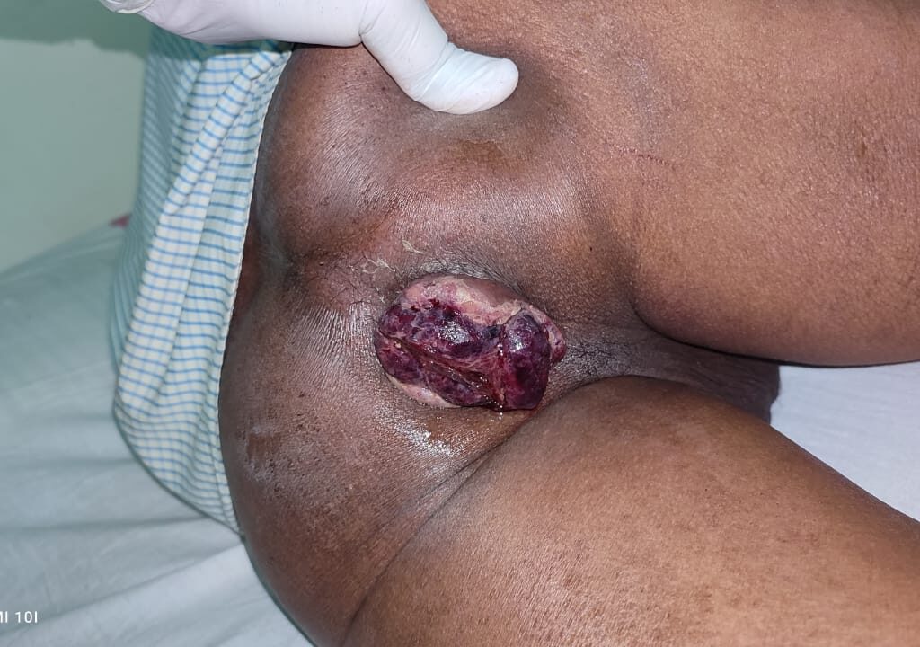 A middle-aged male patient came to the clinic with severe pain, swelling, and bleeding in the anal region. He had been dealing with hemorrhoids for some time, but the symptoms worsened over the past few days. The patient also noticed a prolapse and signs of infection, which raised concern for more serious complications.